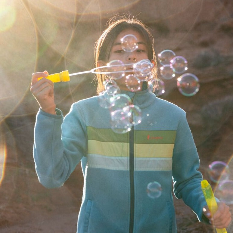 The Kids’ Teca Fleece is great as a stand alone jacket or midlayer on any adventure. Each fleece is made from best in class, recycled fleece and repurposed polyester taffeta that might otherwise end up in the landfill. This style is unisex.